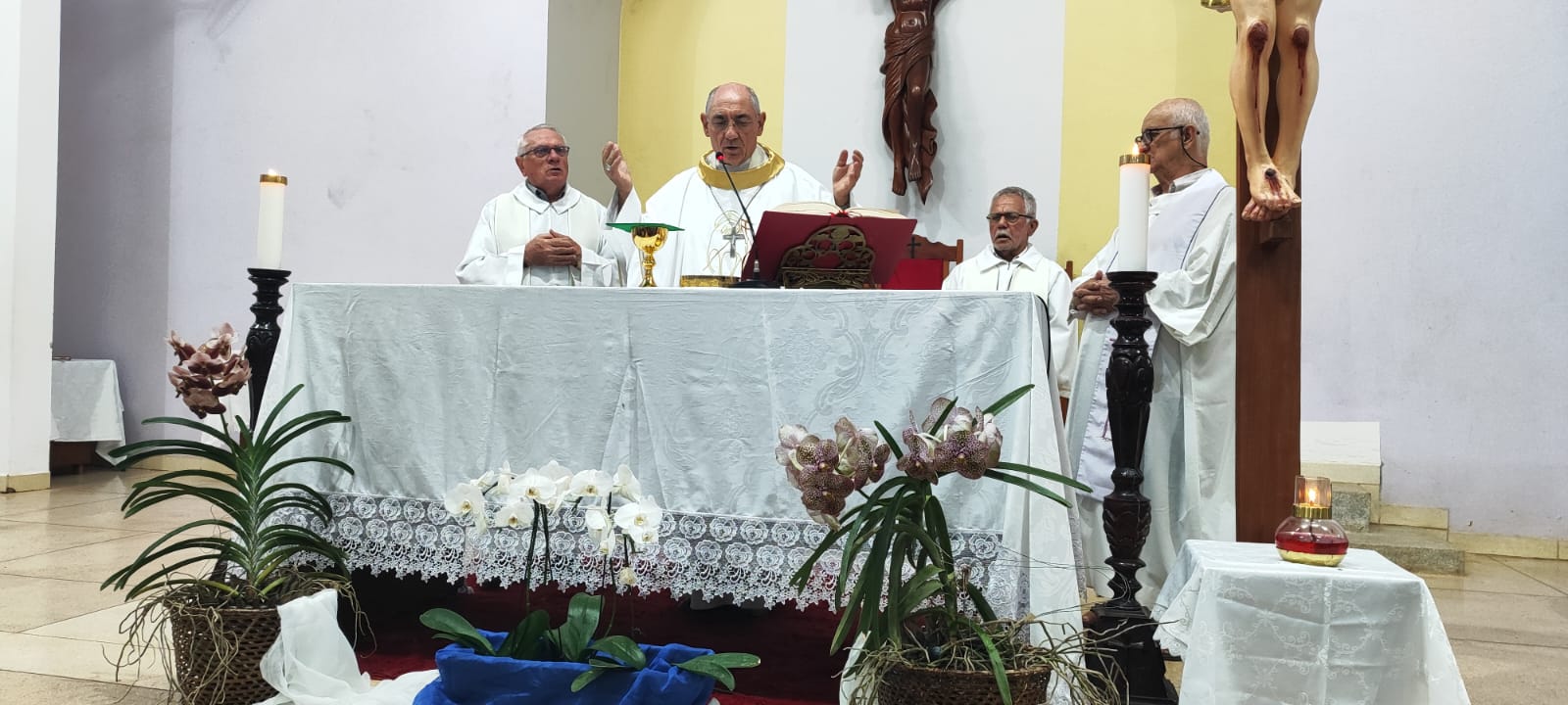 A cerimônia foi concelebrada pelos padres xaverianos Mateus, Danilo e Amadeus, reunindo fiéis, religiosos e autoridades locais em um momento de gratidão e comunhão.
